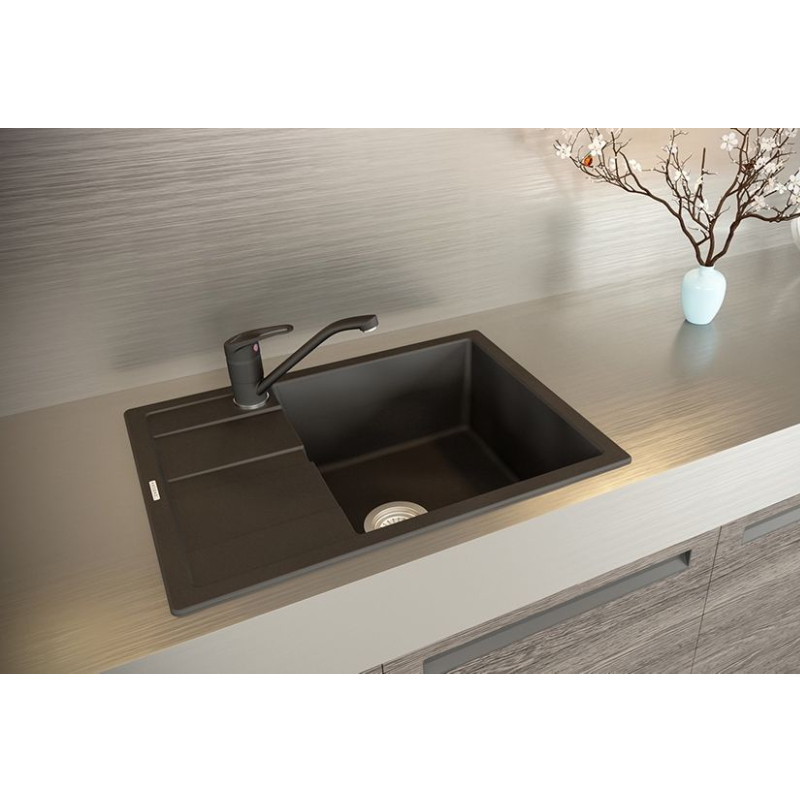 Гранитната мивка Ronda D100L на SCHOCK се характеризира с изящен дизайн, страхотна визия и неповторимо качество на материалите. В състава на мивката присъства 80% гранитен пясък. Моделът е предназначен за шкаф/плот 50см. Гарабитните размери на Ronda D100L са 65 х 50см, а размерът на коритото е 39 х 44 х 19см. Мивката е окомплектована със сифон с преливник, като към него е възможно да се включи миялна или пералня, щипки за монтаж.