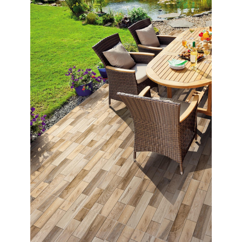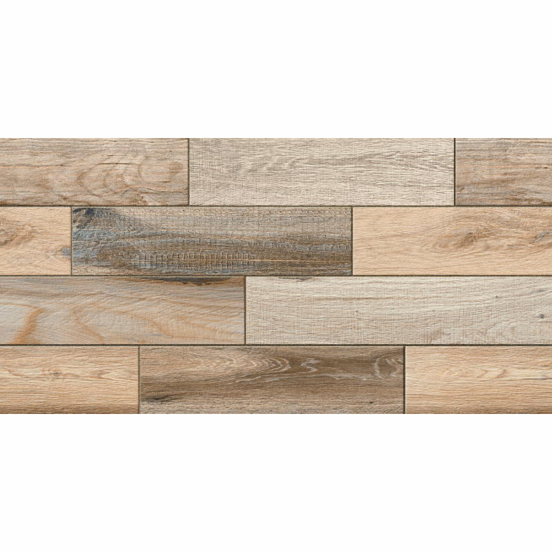 Първо качество гранитогрес турско производство. Нетрадиционен модел, с разноцветни елементи, различни във всяка плочка в кашона. Дизайнът на гранитогреса представлява имитация на дърво. Плочките са подходящи за интериорно и екстериорно приложение.