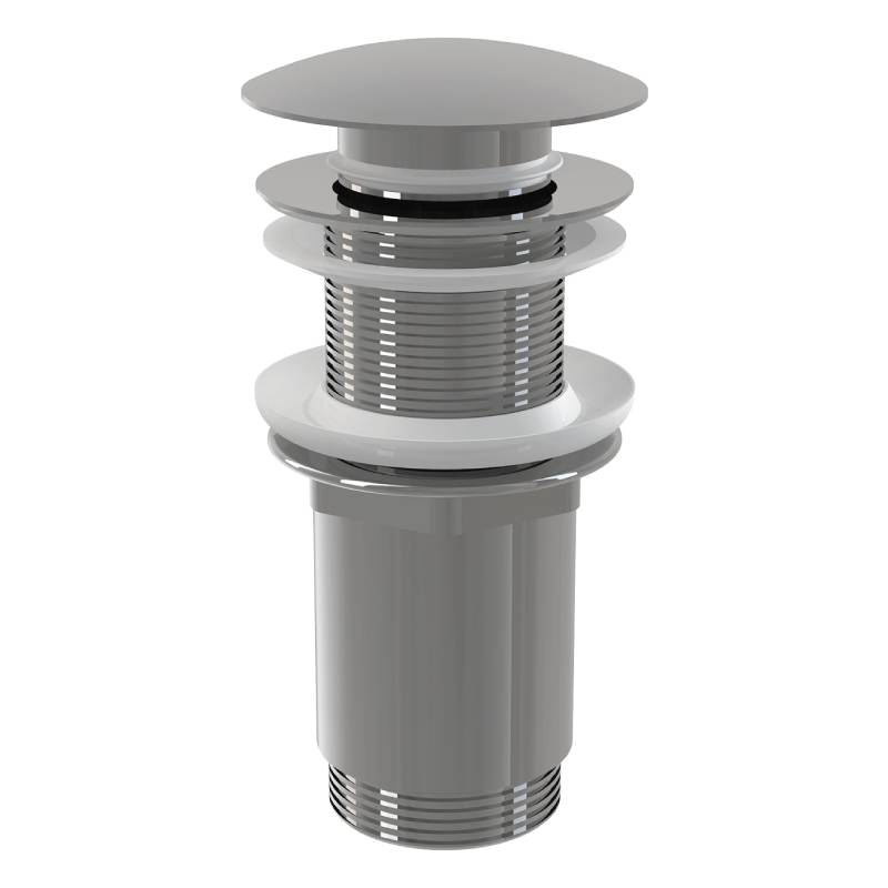 Сифон за умивалник с клик/клак механизъм и голяма тапа на марката ALCAPLAST. Сифонът е с размер на резбата 1 1/4" (5/4"). Произведен е от висококачествена неръждаема стомана. Съвместим е с всички керамични мивки за баня, който разполагат със стандартен отвор за сифон.