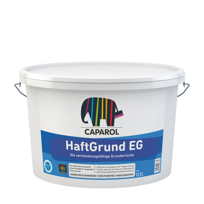 Специалният Haftgrund грунд на CAPAROL се характеризира като силно абсорбиращ, пигментиран грунд за дисперсионни и силикатни дисперсионни бои, приложими в интериора. Той увеличава адхезията на гладките повърхности като гипскартон, бетон, както и на слабо абсорбиращи минерални мазилки. При нанасяне на гипскартон значително намалява риска от отлепване на хартиения слой. Haftgrund не съдържа емисии и разтворители, лесен е за нанасяне, екологично чист и със слаб аромат. Притежава добра покривност и е водоразредим. Предлага се в бял цвят като може и да се оцвети ръчно с максимум 25% оцветители.
