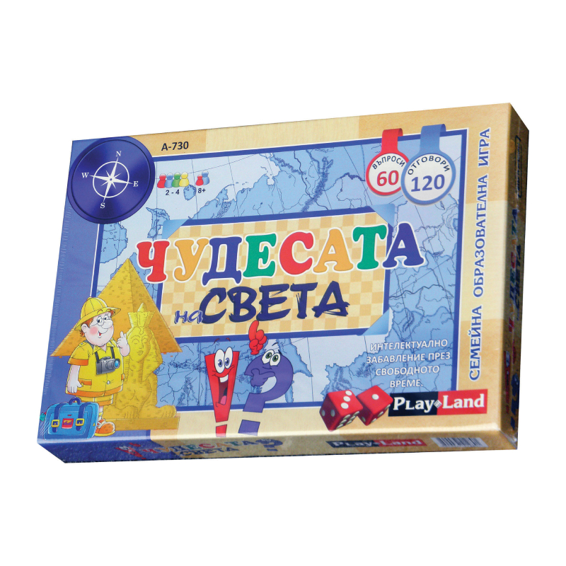 Настолната игра "Чудесата на света" на PLAYLAND е семейна образователна игра за възрастни и деца над 8 години. Тя изисква играчите да имат не само късмет, но и знания. Целта е всеки играч да мине през колкото може повече държави, да отговори на въпроси и да печели точки. Пътувайки по картата на света играчите получават много интересни познания за чудесата на света. Играчът, останал без пари, излиза от играта. Победител е играч, пръв запълнил с жетони Въпросите в своя сектор.