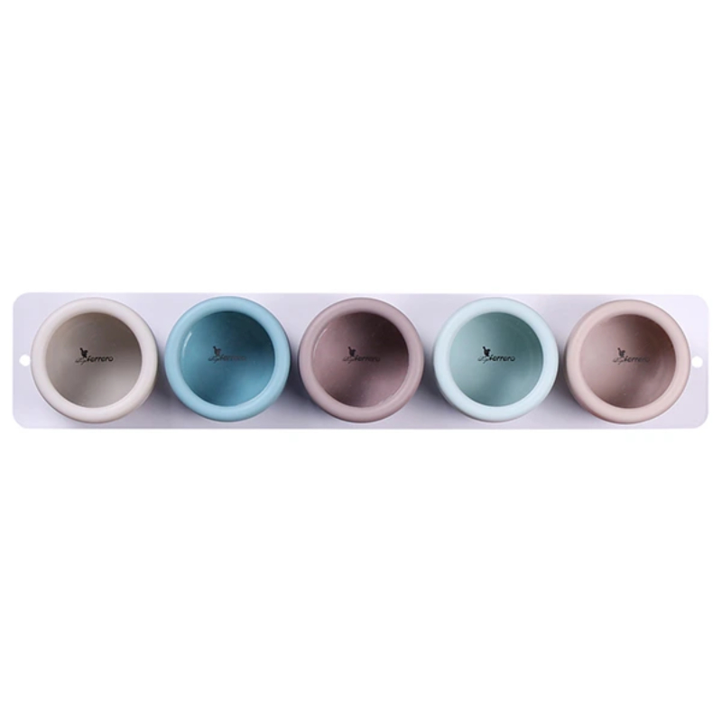 Комплектът за съхранение на подправки Luigi Ferrero Norsk съчетава естетика и практичност в едно стилно кухненско решение. Съдържа 5 цветни бурканчета с прозрачен прозорец на капачката и стабилна метална стойка, която придава елегантен акцент на всяка кухня.