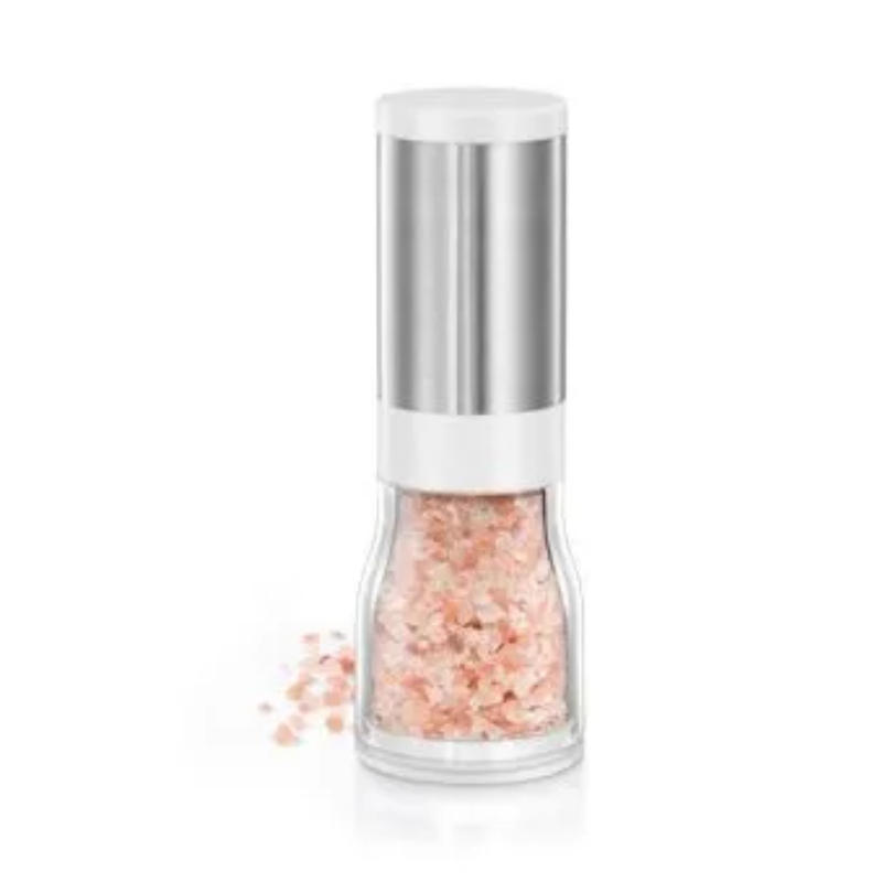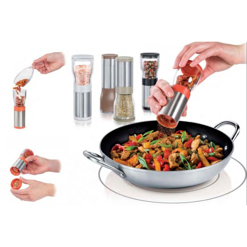 Тази стилна мелничка за подправки е създадена за хора, които ценят вкуса и аромата на прясно смлени съставки. Изработена от неръждаема стомана в комбинация с устойчива пластмаса, тя предлага здравина, дълготрайност и модерен вид, подходящ за всяка кухня.