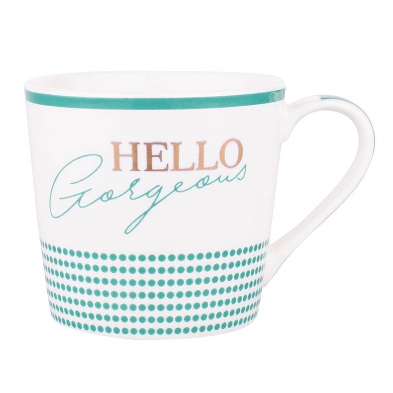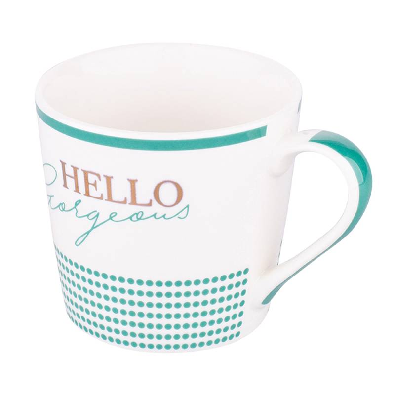 Чаша за топли напитки на марката ALTOM. Чашата е изработена от порцелан и е с вместимост 350мл. Посудата е с декор - приветлив надпис Hello. Може да се мие в съдомиялна машина.