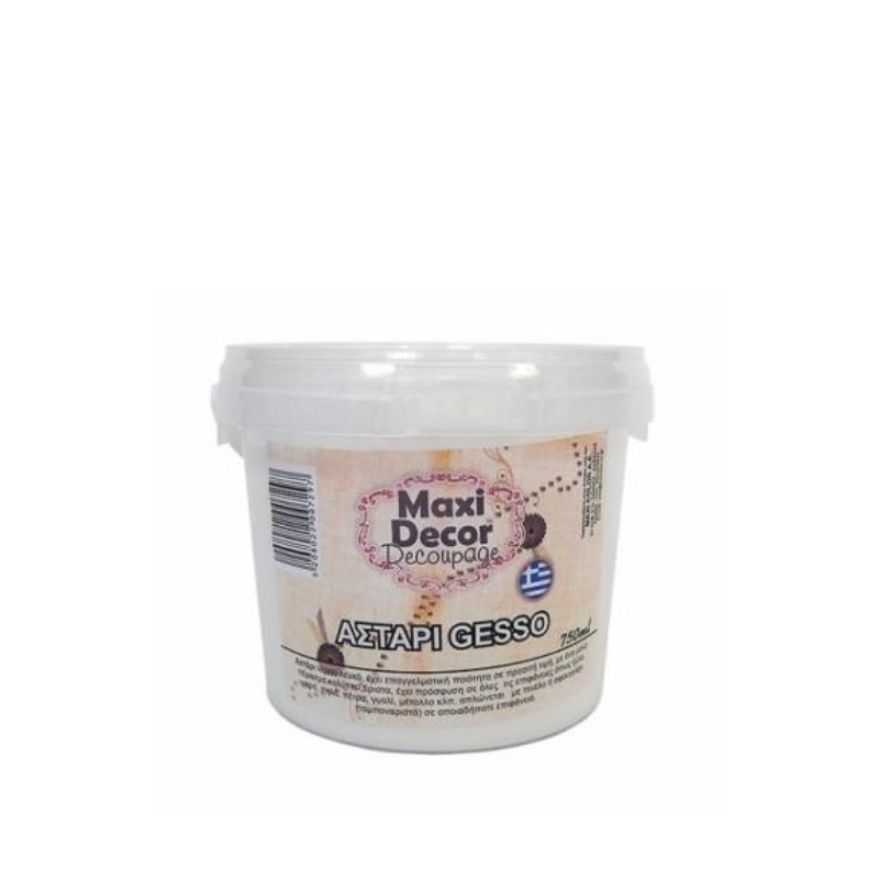 Акрилnият водоразтворим грунд Astari Gesso на MAXI DECOR запечатва абсорбиращи повърхности и ги подготвя за последваща обработка. Може да се полага върху хартия, дърво, стъкло, стиропор, камък, метал и друти. Характеризира се с висока покривност и може да се използва като подложка при тебеширени бои и в декупажната техника. Нанася се с четка или гъба, тампон.