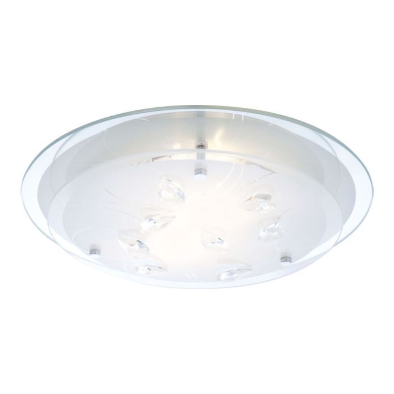 Осветителното тяло е изработено от метал в цвят хром и осветяваща част от стъкло. Плафонът е съвместим с LED и енергоспестяващи крушки.