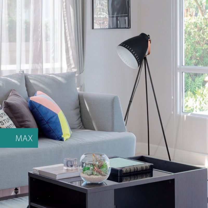 Лампион с модерен дизайн, изработен от три черни метални рамена с черна подвижна метална чашка, който ще изпълни със стилна атмосфера вашия хол, трапезария, хотел или заведение.