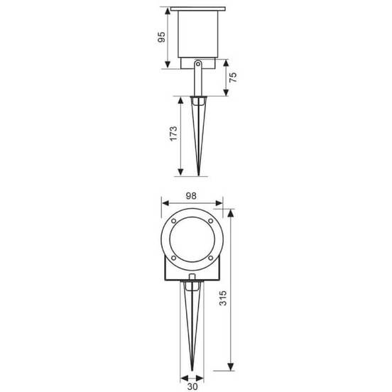 Влагозащитеното осветително тяло ACER/SP за външно осветление. Градинският прожектор е окомплектован с колче, с помощта на което осветителното тяло се забива в земята, а това дава възможност то да се мести и насочва максимално лесно. Градинският прожектор с колче е с метален корпус и фасунга с цокъл GU10.