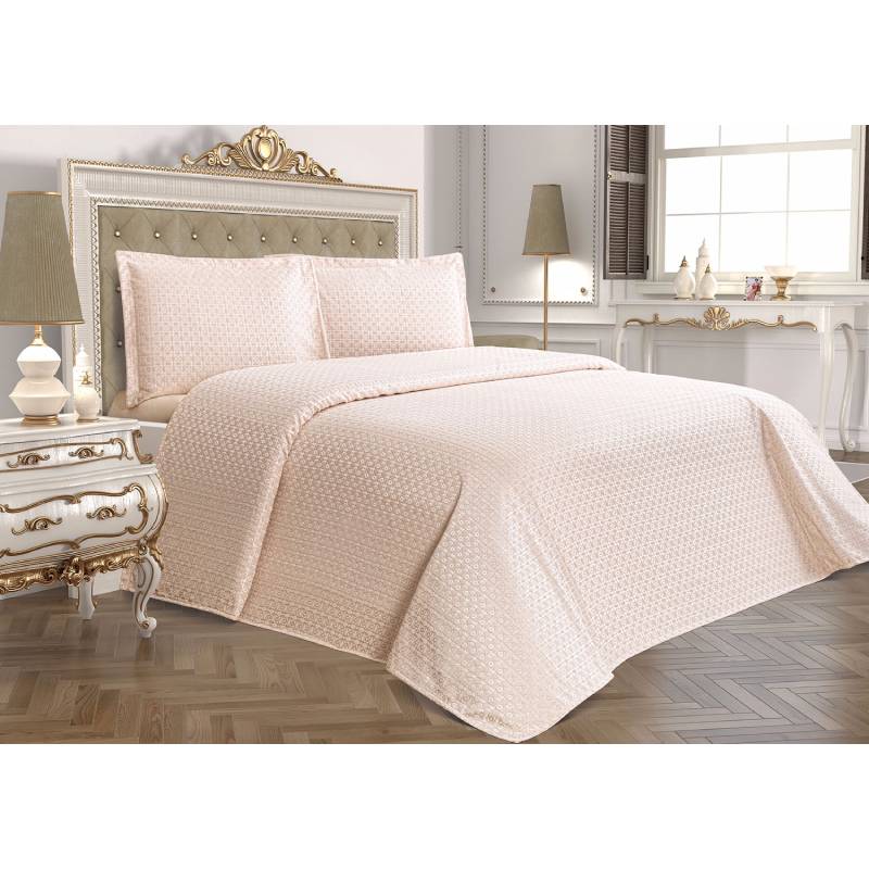 Луксозен комплект за спалня включващ 1 брой шалте за легло и 2 броя калъфки за възглавници. Комплектът е произведен по високи стандарти за качество от турският производител BEYTUG, серия Tropik home ANGEL.