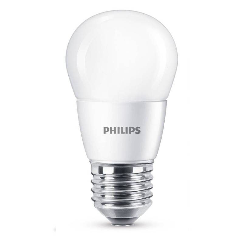 Енергоспестяваща LED лампа PHILIPS. LED лампата е с мощност 7W (еквивалент на 60W крушка с нажежаема жичка), цокъл E14 и светлинен поток 830lm.