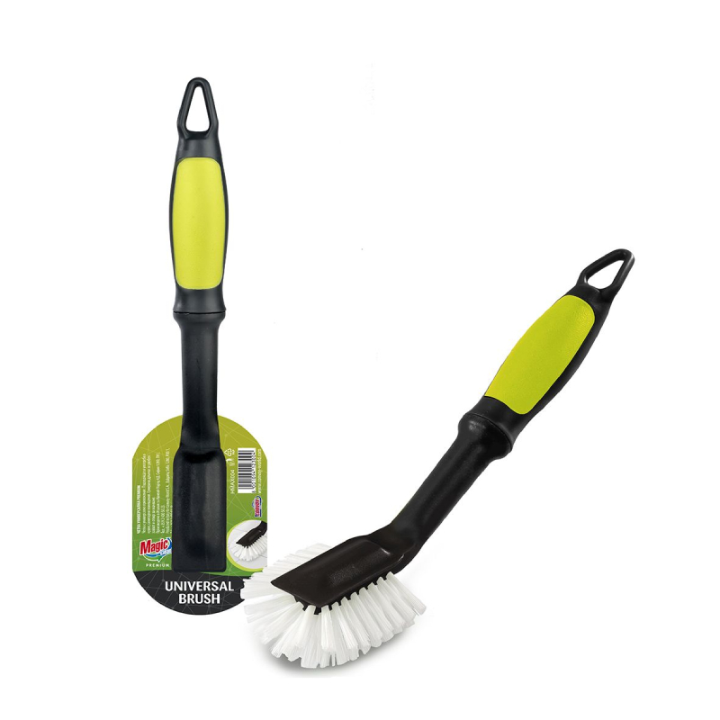 Домакинската четка Premium Universal Brush на MAGIC CLEAN представлява домакинска четка с твърд косъм за справяне с високозамърсени повърхности и предмети. Характеризира се със здрава основа и гумирана дръжка за удобен захват. Притежава отвор за окачване при съхранение.