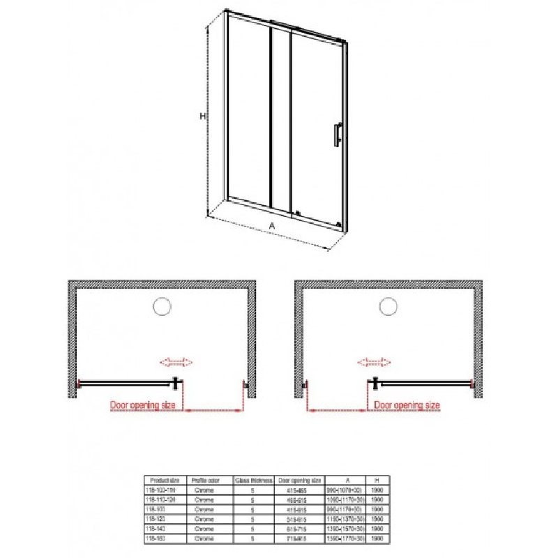 - Тип параван: Регулируем, с една плъзгаща се врата и едно стационарно стъкло