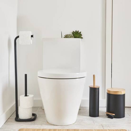 Аксесоар за баня – свободностояща четка за тоалетна чиния. Аксесоарът е с диаметър Ф10.3см, а общата височина заедно с дръжката на четката е 38.4см. Контейнера на четката за тоалетна чиния е произведен от метал, а дръжката на четката от PVC и бамбук.