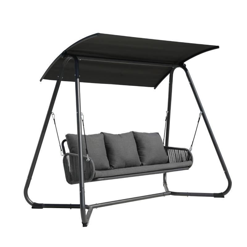 Триместна градинска люлка с размери 239 х 123 х 172см и цвят антрацит. Градинската люлка е със стабилна метална конструкция и комфортни възглавници. Изключително удобна, подходяща за градини, дворове и големи тераси.