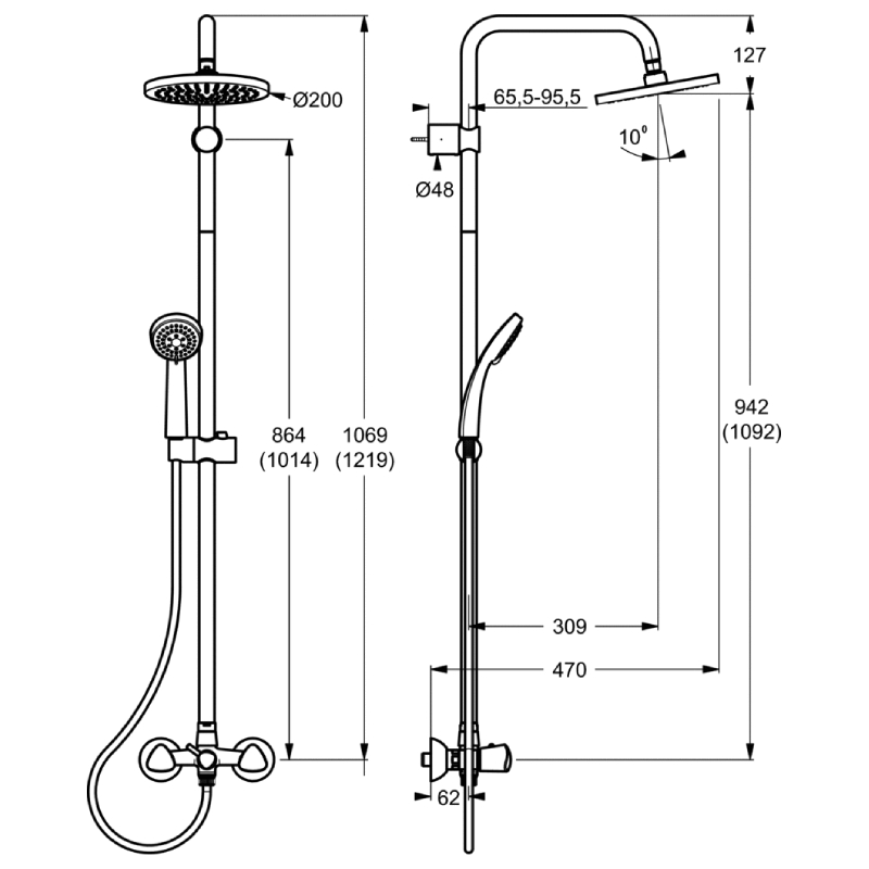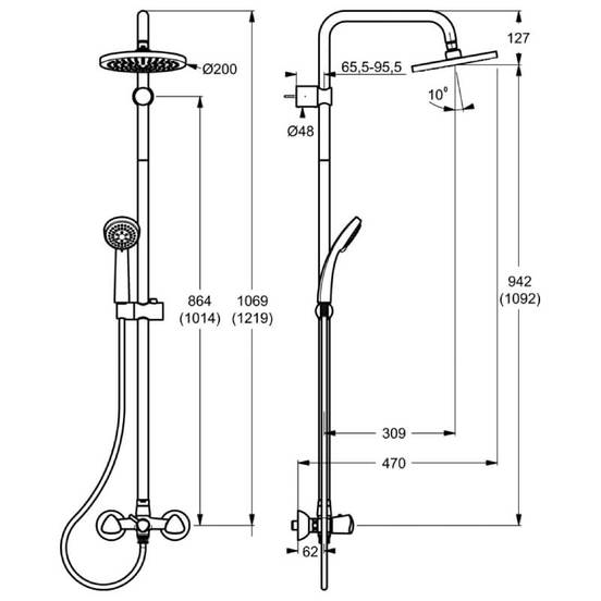 Душ системата Seva Trio на марката VIDIMA притежава красив, елегантен и модерен дизайн. Моделът разполага с две метални ръкохватки смесител и керамични затварящи механизми. Монтажът е със стандартно присъединяване със скрити холендри и розетки. Щангата е с въртяща се фиксирана душ пита с диаметър Ф 200 мм и ограничител на дебита 9.5л/мин. В компелкта е включен и удължител за щанга с дължина 15см. Ръчният душ е трифункционален, като може да се избира между функциите дъжд, ситен дъжд и масаж. Диаметърът му е Ф 80 мм, а ограничителят на дебит е 7.6л/мин. Металният двойноплетен шлаух е с дължина 150см.