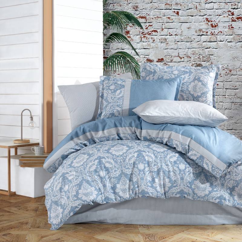 Двоен спален комплект в 4 части на марката AKHOME. Изработен от висококачествен плат Ранфорс - 100% памук. Спалният комплект се състои от чаршаф, плик и 2 броя калъфки за възглавница. Частите са в щампиран десен. Ранфорс е основен тип тъкан за спално бельо, която се характеризира с висока трайност, плътност, здравина и отлични хигиенни свойства.