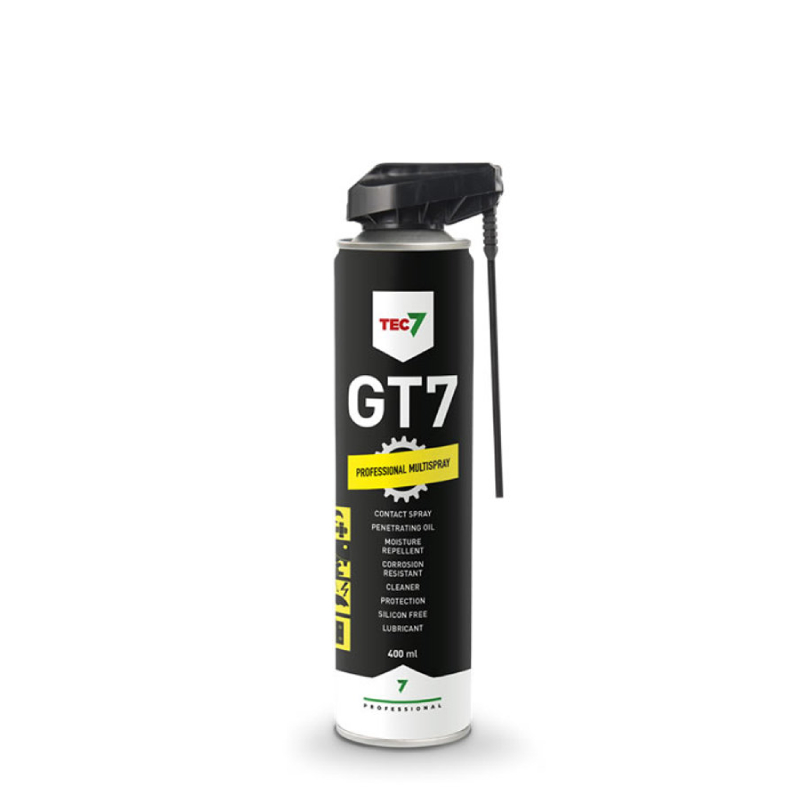 Смазката GT7 отстранява окисляването и подобрява функционирането на електрическите инструменти и вериги. Измества влагата от повърхността, предпазва от корозия, не съдържа силикон. Предотвратява появата на ръжда и влага, като създава дълготраен, прозрачен и влагоустойчив слой. Посредством студено свиващия си ефект намалява ръждата, като разчупва кристалните й частици. Прониква дълбоко и бързо дори и под стари слоеве грес или масло. Смазва и с това си качество се явява най-добрият избор за инструменти, фини механични и електрически компоненти като задвижващи ремъци, резбови връзки и др. Почиства идеално пневматични инструменти, цилиндрични брави, джанти, петна от грес, катран, спирачна течност и др.