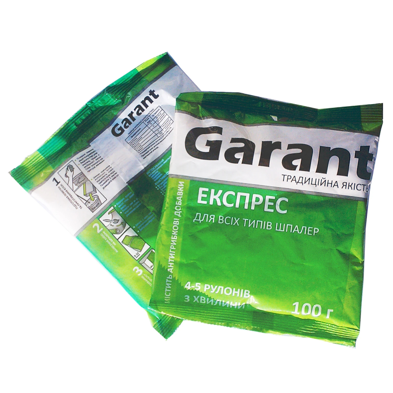 Лепилото за тапети Express на GARANT се използва се за всички видове тапети - хартиени, миещи се, винилови тапети от пяна, винил, лепене на полистиролови плочки. Лепилото съдържа модифицирано техническо нишесте и противогъбични добавки. Не съдържа вредни вещества. Разходната му норма е около 150-180 мл/м2 в зависимост какво се нанася. Приготвя се за около 3 минути. Нанася се лесно при температура от + 15°C до + 25°C. Лепилото се характерзира с много ниска хигроскопичност и удължено време за съхранение в отворена форма.