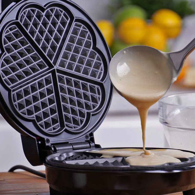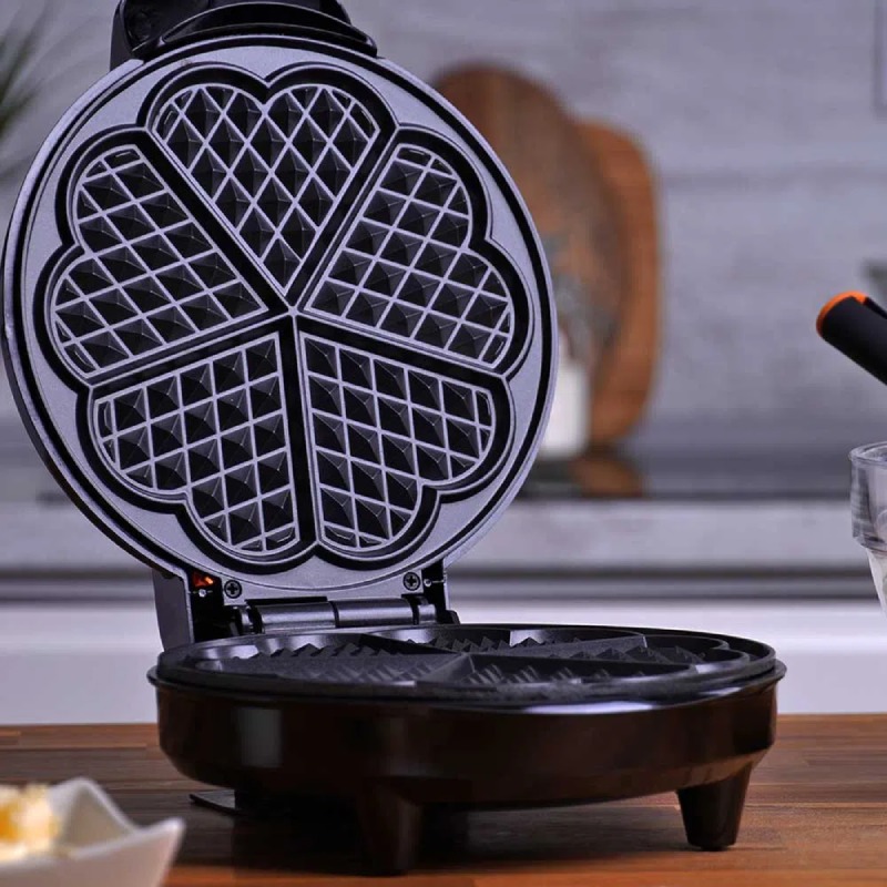С гофретник V51442GA, на VOLTZ, сутрените са по-желани. Изработен с пет сърцевидни, незалепващи гнезда, той дава предпоставки за едно по-вкусно начало на деня. Светлинни индикатори ще ви подсказват за готовността за работа на уреда. Тяхното действие се прецизира от функционален терморегулатор. V51442GA е изработен от изисканата комбинация от черно и инокс, с което лесно се адаптира към всеки интериор.