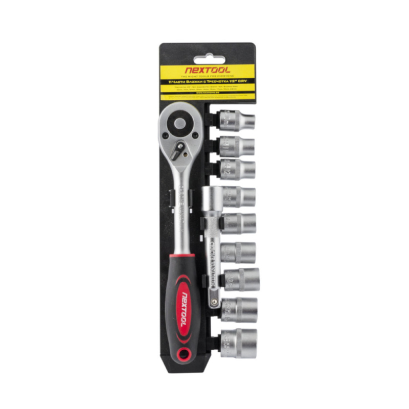 Реверсивната тресчотката 1/4" на NEXTOOL се предлага в комплект с вложки и 120мм удължение. Частите с матово хром покритие и са изработени от висококачествена CrV хром-ванадиева стомана за оптимална защита от корозия. Тресчотката е със 45 зъба и се характеризира с лесно използване и бързо освобождаване. Двукомпонентната дръжка гарантира повече сцепление.
