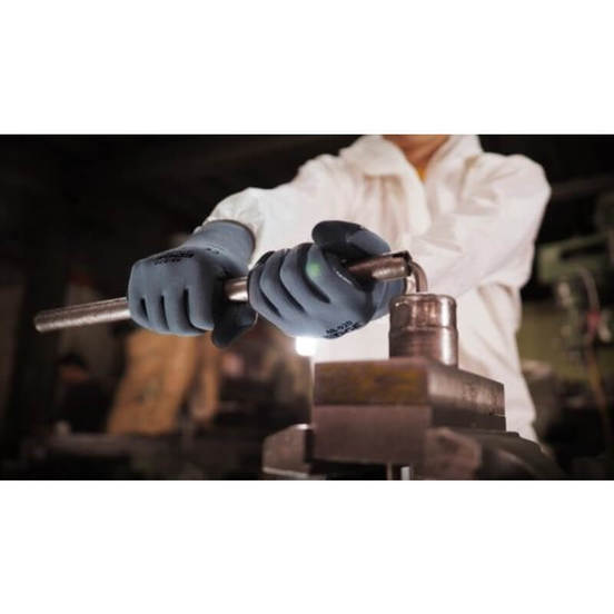 Работните ръкавици са със стандарти за качество EN420 (Общи изисквания) и EN388 (Механични опасности). Еластичнаият маншет на китката осигурява плътно прилепване. Грубото покритие на дланта осигурява високо сигурно сцепление в мазна среда.
