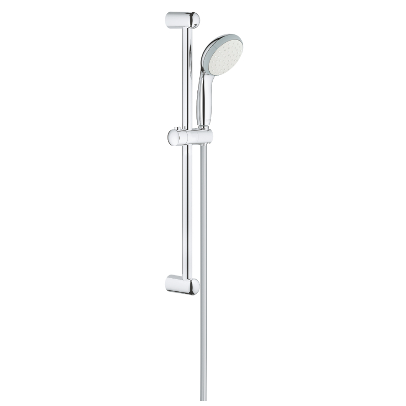 Комплектът тръбно окачване Vitalio Go100 на GROHE се характеризира с елегантен дизайн и дълъг експлоатационен период. Ръчният душ Vitalio Go100 е еднофукнционален с фунцкия Rain душ. Отличава се с вграден Water Guide за по-дълъг живот и SpeedClean система против натрупване на варовик. DreamSpray перфектната струя гарантира винаги отлични резултати. Моделът е подходящ и за проточен бойлер. Характеризира се с универсална система за монтаж, подходяща за всички cтандартни шлаухове. Използва се при минимално налягане 1 bar. Тръбното окачване е с дължина 620 мм, а шлаухът VitalioFlex Trend е с дължина 1750 мм и присъединения 1/2" x 1/2". Желаната височина на душа се наглася от функционалния и лесен за използване държач закрепен към тръбното окачване.
