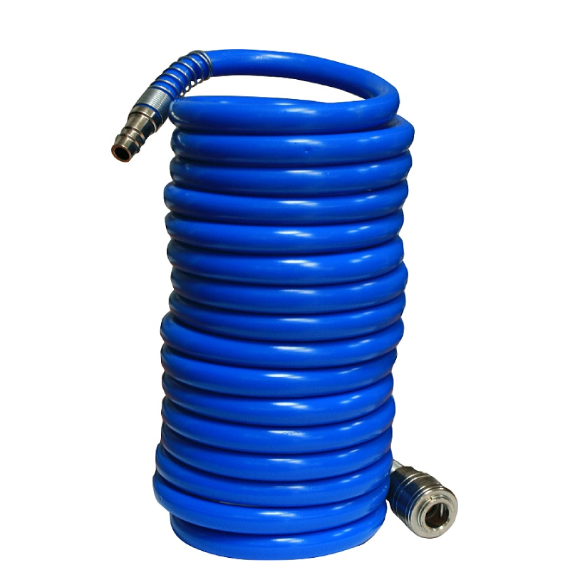 Спираловидният въздушен маркуч на RAPTER е изработен от полиуретан BASF. Оборудван е с бързо освобождаващи връзки с антикорозионно покритие. Подходящ е за свързване на компресора с различни дюзи. Въртешният диамерът на модела е Ф8 мм, а външния Ф12 мм. Общата дължина на маркуча е 5 м.