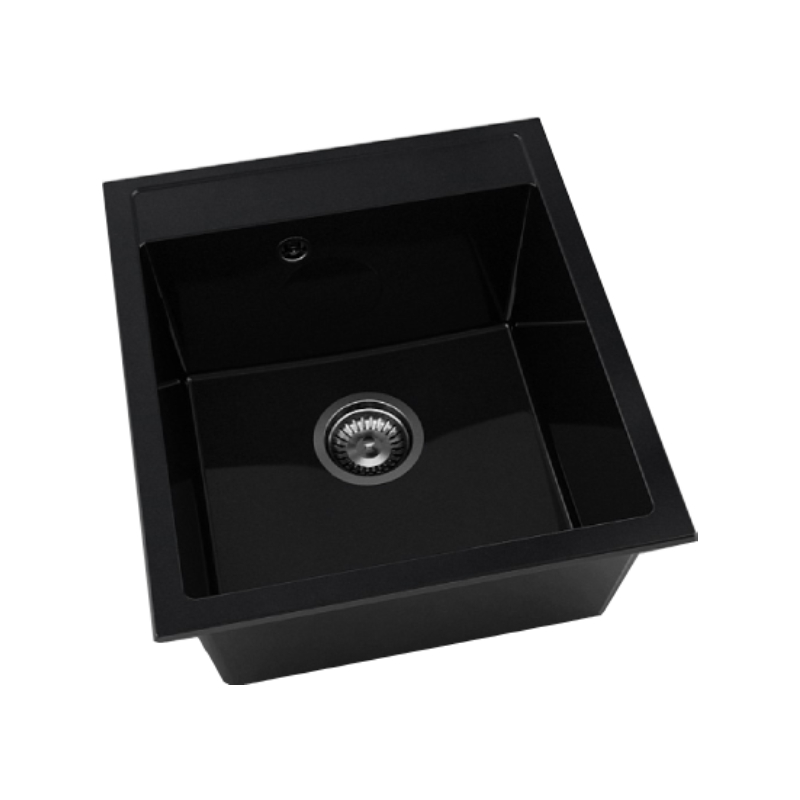 Кухненска мивка за вграждане на марката FAT. Изработена от полимермрамор с габаритни размери 51 х 46 см в цвят черен гранит.