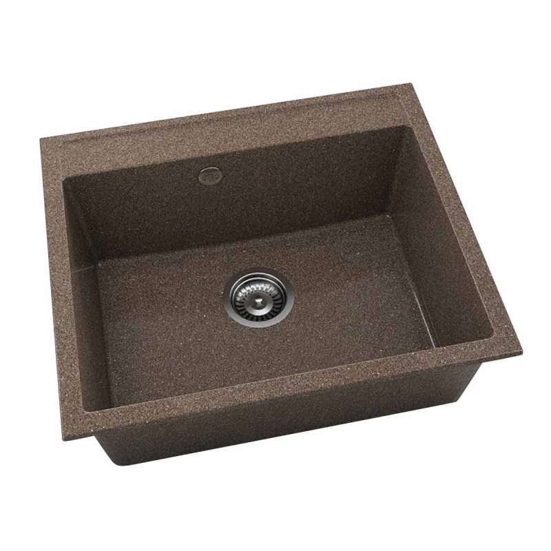 Единична кухненска мивка за вграждане FAT, изработена от полимермрамор с размер 51 х 60 см. Към комплекта е включен висококачествен италиански сифон за мивка с размер Ф90 мм.