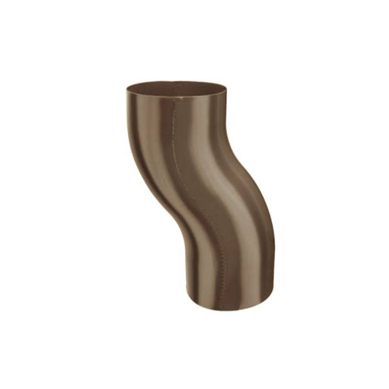 Двойно извито коляно съвместимо с водосточни тръби с диаметър ф100 мм. Коляното за водосточни тръби е част от отводнителната система за покриви на KJG. Коляното е произведено от оцветена поцинкована ламарина в цвят кафяв.
