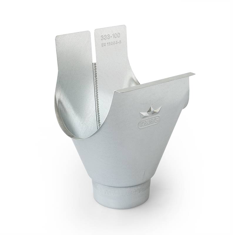 Поцинковано водосточно казанче 25/80 на марката KJG. Поцинкованата ламарина е един от най-известните и най-разширените материали, благодарение на ниската си цена и високото си качество. Няма толкова голяма устойчивост на корозия, колкото оцветената поцинкована ламарина, което е единственият недостатък на този материал. За да се подобри качеството на поцинкованата ламарина е желателно да се покрие с допълнителна повърхностна защита.