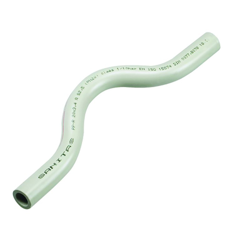 Полипропиленова /ППР/ прехвърляща дъга за тръби за топла вода на марката SANITAS от серията PN20 с диаметър ф25мм. Тя е подходяща за тръби с външен диаметър 25мм. Прехвърлящата дъга се използва във водопроводните системи в случаите, когато се налага тръбите да минават една над друга. Прилага се при полипропиленови тръби, защото е много важно фитингите да са от същия материал, от който са и тръбите.