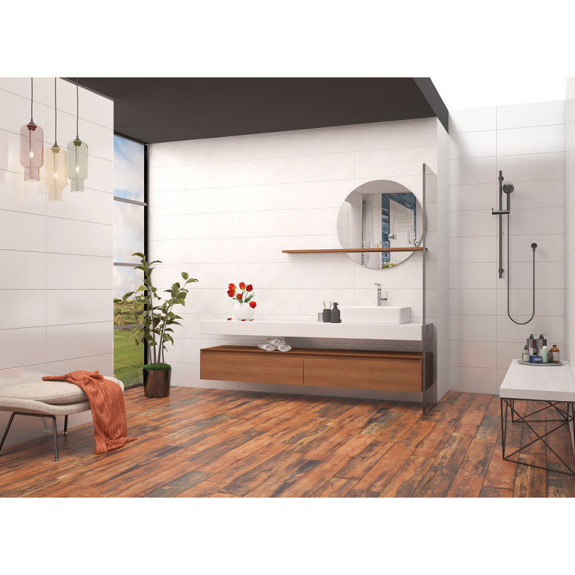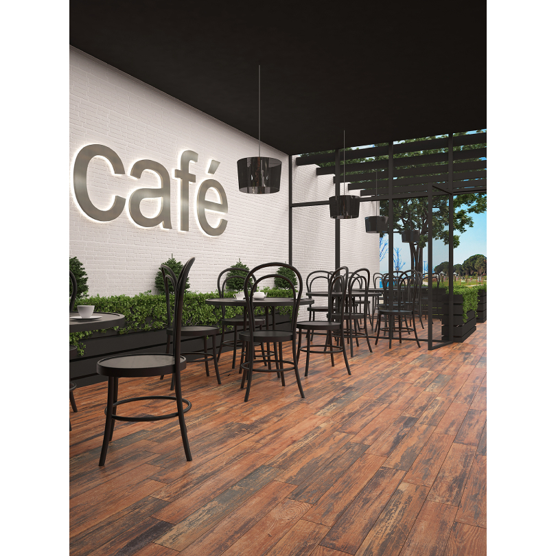 Гранитогрес от серия Burn Wood, модел Red, на марката SERAMIKSAN в цвят червен. Плочките са с размер 15 х 90см и дебелина 9мм. Повърхността им е мат и са с леко изразен релеф. В един кашон се съдържат 9 броя плочки с покривна площ 1.22 кв.м.