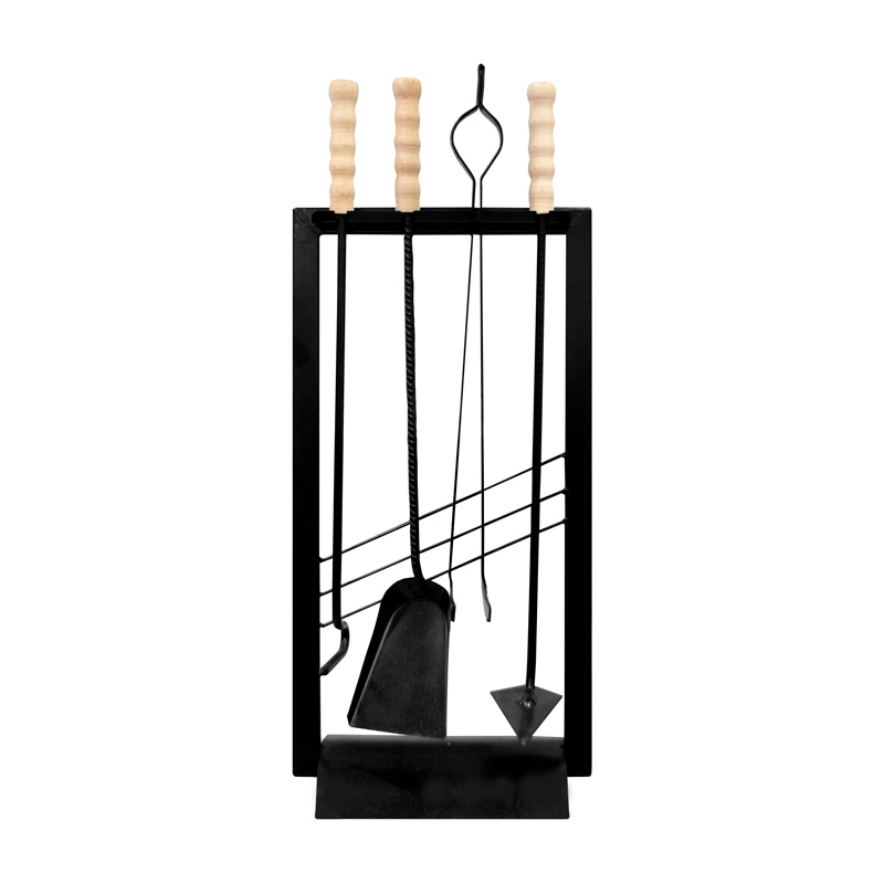 Аксесоарите за камина са важен атрибут през зимния сезон. Комплекта е съставен от четири приспособления, стабилно разположение върху масивна, правоъгълна стойка. В основата си, тя се позиционира при размери 16 х 30см, което й придава устойчивост, въпреки височината от 70см.
