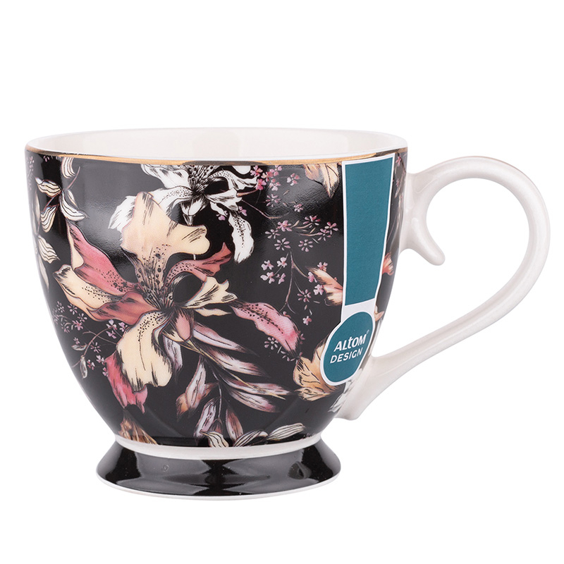 Порцелановата чаша от серия Black Lilly на марката ALTOM е подходяща за сервиране на всякакъв вид горещи напитки. Може да се мие в съдомиялна машина. Произведена е по високи стандарти за качество от NBC порцелан, който поддържа напитката топла за по-дълго време. NBC порцеланът е изцяло от естествени суровини и не съдържа тежки метали. Съчетава се идеално с останалата кухненска посуда от същата серия. Височината на чашата е 9.5 см, широчината 10.8 см.