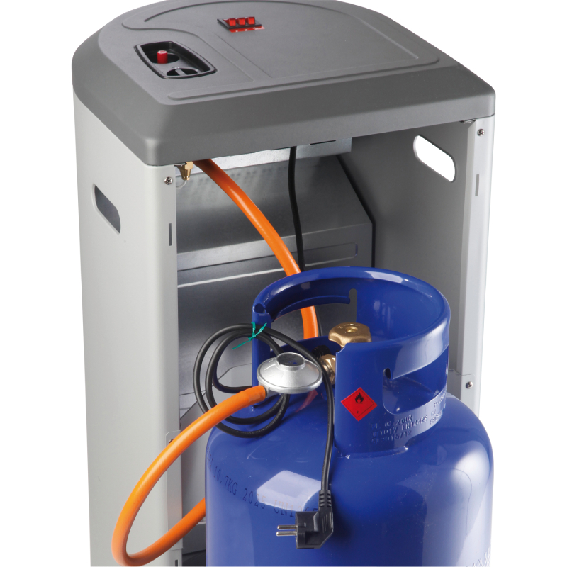 Печката се доставя в комплект с редуцир вентил. Неговата работа е оптимална в едно с газова бутилка с ъглов вентил.