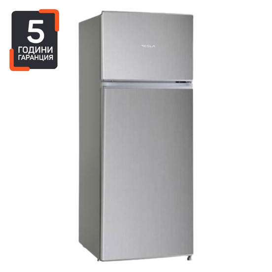Свободностоящ хладилник RD2100MS1 Tesla с горна камера и общ обем 209 литра. Обемът на хладилната част е 168л, а този на камерата – 41л. В хладилната си част, хладилникът разполага с 3 стъклени рафтчета, които лесно могат да се вадят и да бъдат нагласяни на подходяща височина. В най-долната си част, хладилникът разполага и с чекмедже за свежо съхранение на зеленчуци.