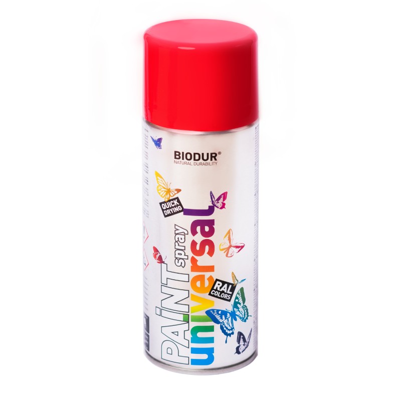 Универсална спрей боя - бързосъхнещ алкиден емайллак подсилен с акрилати. Подходящ за интериорно и екстериорно приложение. Спреят е подходящ за боядисване на метал, бетон, гипсокартон , дърво, стъкло, хартия и други повърхности. Перфектен за боядисване с шаблони. Осигурява силно гланцово покритие, устойчиво на механично и атмосферно въздействие. Не избледнява на слънчева светлина и запазва гланца си.
