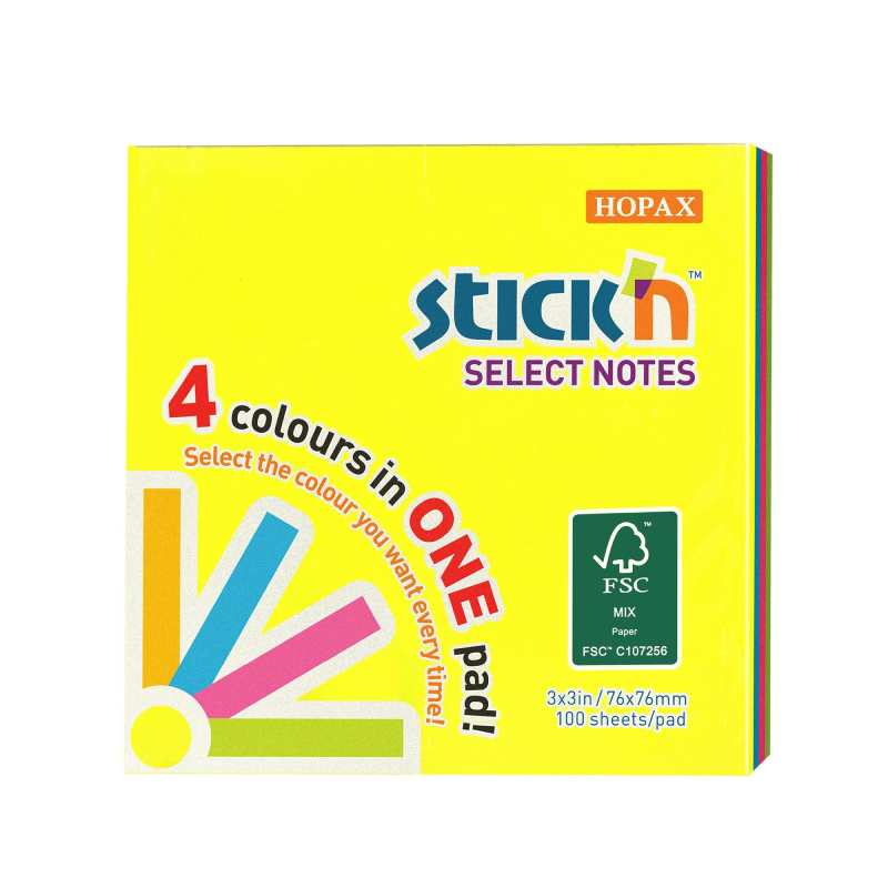 Самозалепващите се листчета Stick'n са практично и ефективно решение за отбелязване на важни бележки, напомняния и задачи. Те залепват сигурно върху различни повърхности, без да оставят следи, и позволяват многократно залепване и отлепване. Четирите открояващи се неонови цвята гарантират, че всяка бележка ще бъде лесно забелязана.