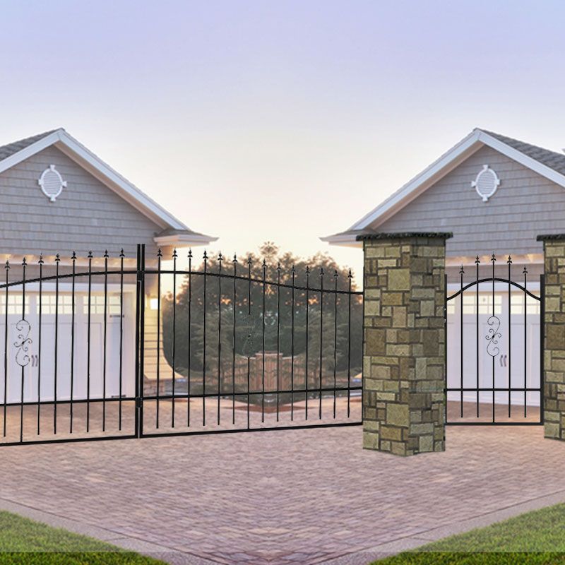 Двукрила оградна врата от серия Vienna на марката POLBRAM. Двукрилата гаражна врата е произведена от стоманени, лазерно рязани профили, които са защитени от корозия посредством горещо поцинковане. Дебелината на цинковото покритие е около 55-70 μm и осигурява защита от корозия за 10 до 50 години в зависимост от метеорологичните условия и условията на околната среда.