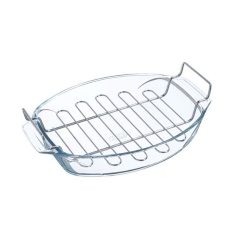 Овална грил тава за фурна с размери 39 х 27 см, височина 9 см и вместимост 4 л. Тавата е произведена от висококачествено боросиликатно стъкло, което е устойчиво на много високи и много ниски температури – диапазон от -40°C до +300°C. Устойчива е на надраскване, може да се поставя в микровълнова и да се мие в съдомиялна машина.