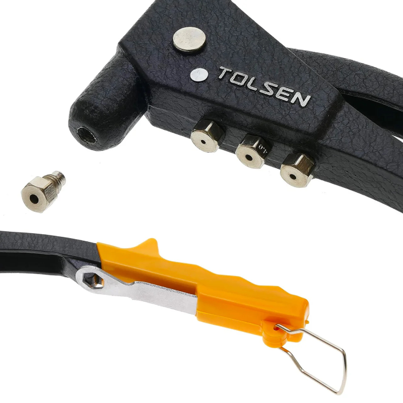 Нитачка за стоманени и алуминиеви нитове TOLSEN. Тялото на нитачката е изработено от алуминиева сплав. Дръжката е ергономично проектирана и подсилена. Подходящ за употреба в строителството и производството.