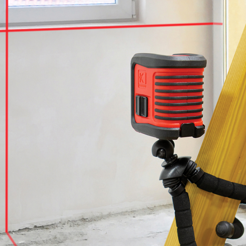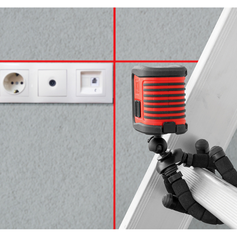 - Проектира две ярки лазерни линии (хоризонтална и вертикална) под 90°, осигуряващи прецизно нивелиране