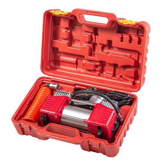 Автомобилен компресор, RD- AC14 с марка RAIDER. Уредът е двуцилиндров, с капацитет 12V работна мощност 300W. Включва вграден манометър, 4 х адаптери, 2 х клеми. Максималният работен дебит на компресора е 70 л./мин., максималното работно налягане е в рамките на 0.96 MPa. Освен за помпане на гуми, автомобилният компресор може да се използва и за "продухване" и почистване с въздух на определени повърхности, което нерядко се използва от самите автомобилисти.
