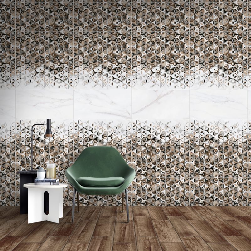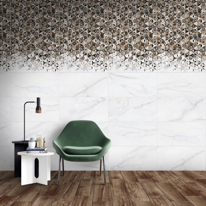 Декор плочки за баня от серия Калаката Сириус с размер 30 х 60см и дебелина 8мм. Декор плочките са подходящи за полагане на закрито. Притежават гладка, гланцирана повърхност.