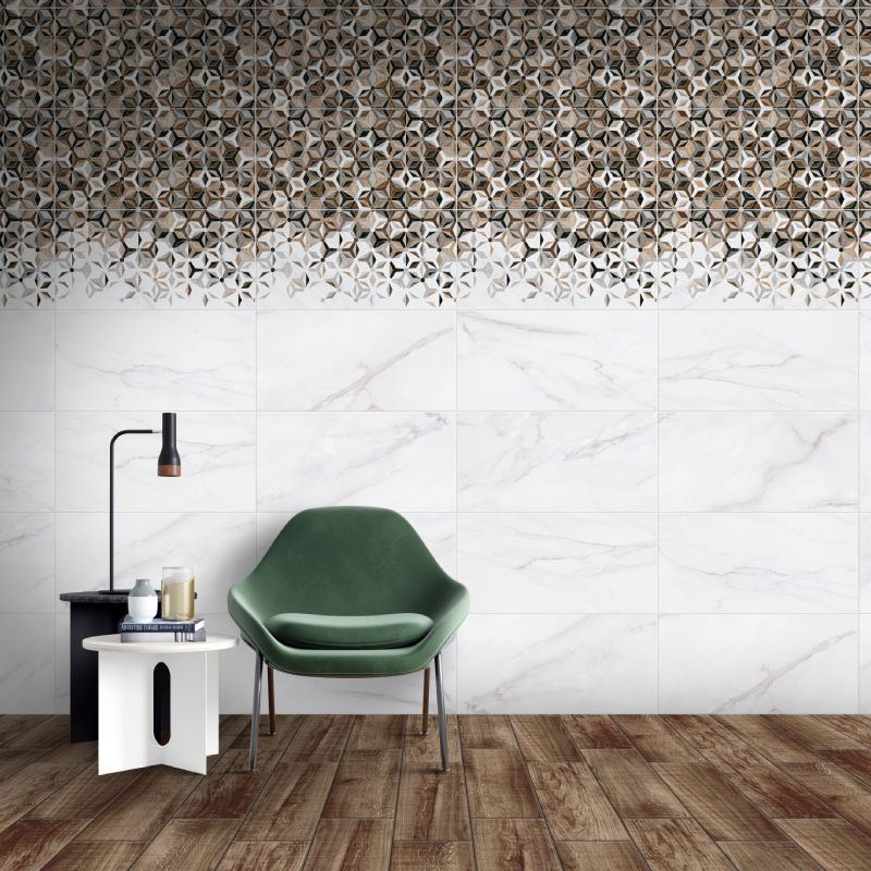 Декор плочки за баня от серия Калаката Eстела с размер 30 х 60см и дебелина 8мм. Декор плочките са подходящи за полагане на закрито. Притежават гладка, гланцирана повърхност.