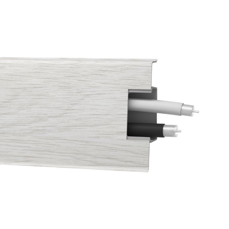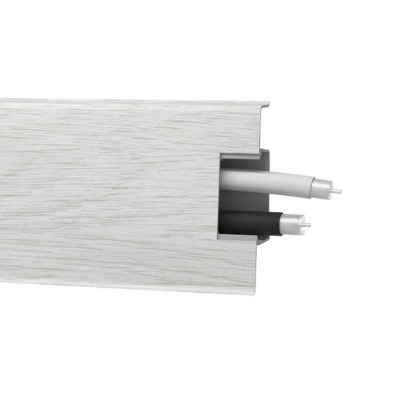 Подов перваз с кабелни канали за ламиниран паркет. Подовият перваз е на марката ARBITON от серия Мак 60/25 с цвят Кестен Жирона.