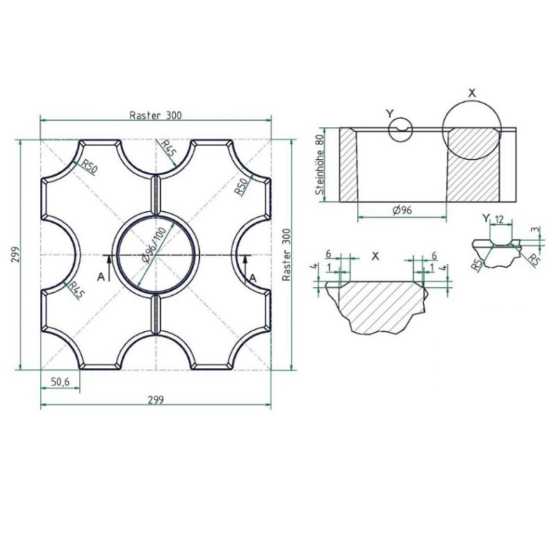 Паркинг елемент, паве с размери 30 x 30 x 8см в цвят сив. Едрите отвори осигуряват място за устойчив растеж на трева.
