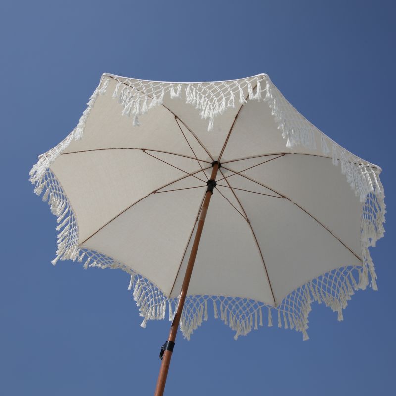 Голям градински чадър без стойка, изработен от висококачествени материали в цвят бежов. Чадърът е подходящ за използване в заведения и кафенета, а също така и за поставяне в двора, градината или на плажа. Устойчив е на UV лъчи и неблагоприятни атмосферни условия.