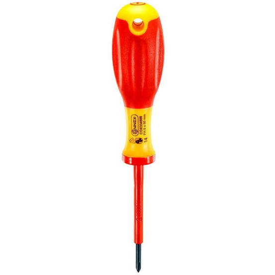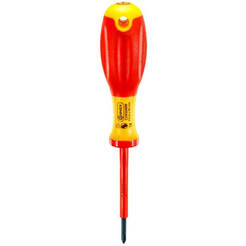 Висококачествена отвертка, подходяща за работа с електрически инсталации. Отвертката е с изолация до 1000V. Произведена е от висококачествена хром-ванадиево-молибденова стомана. Дръжката е многокомпонентна, с удобен и ергономичен захват.